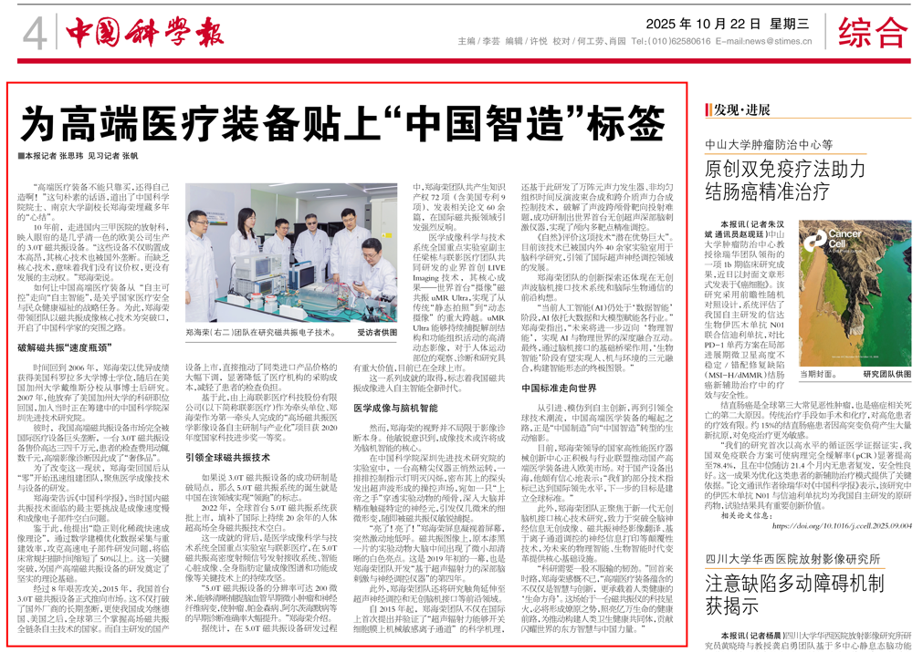 《中国科学报》报道医学成像全国重点实验室:为高端医疗装备贴上“中国智造”标签