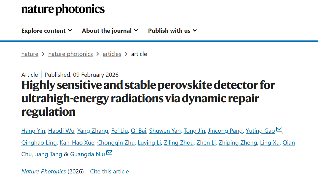 Nature Photonics | 动态自修复钙钛矿X射线探测器实现精准放疗剂量监测