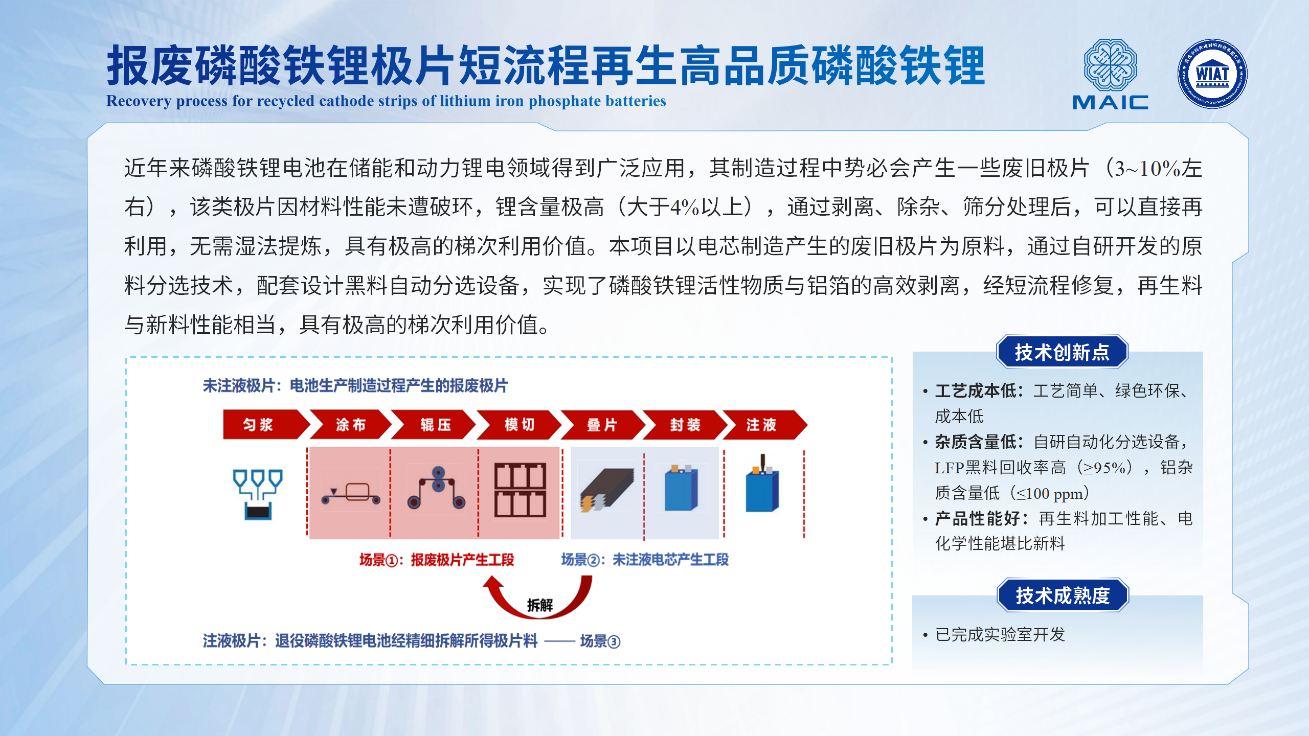 报废磷酸铁锂极片短流程再生高品质磷酸铁锂