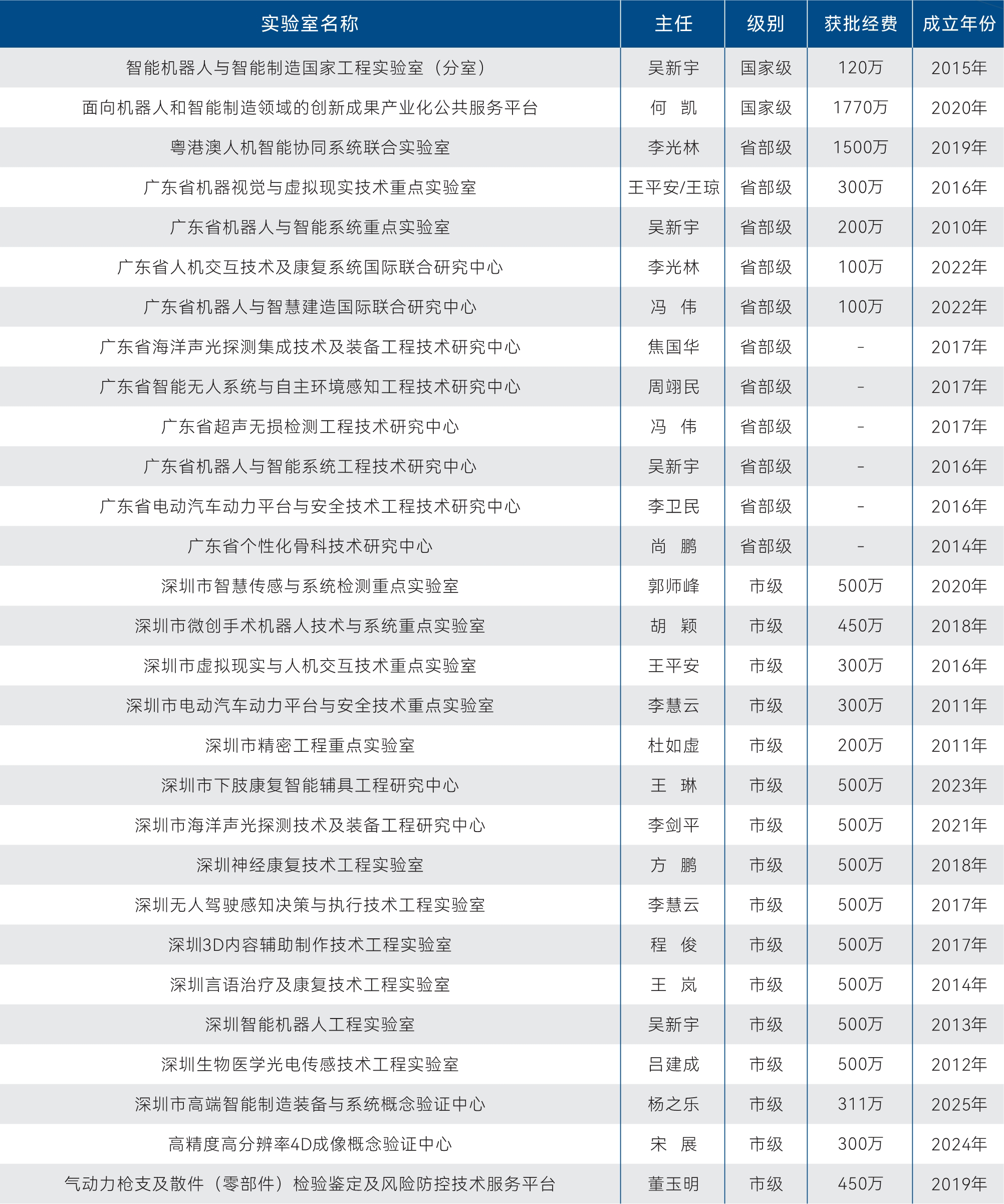 集成所目前共有实验室及平台30项。其中国家级实验室与平台2项、省部级实验室、工程技术研究中心12项,深圳市实验室与平台16项。