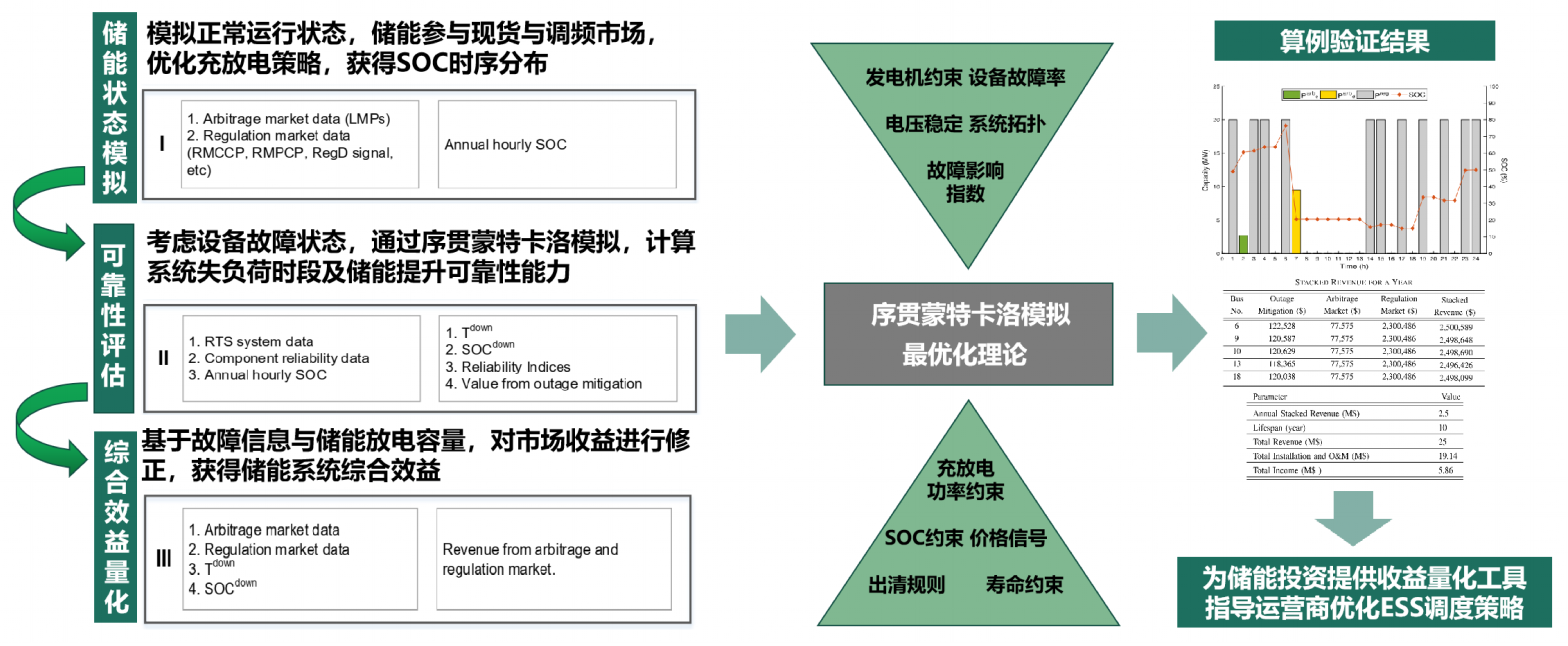 围绕电网侧储能在多场景应用中的综合价值评估问题,开展了储能多重收益叠加机理研究。针对储能在现货市场套利、辅助服务提供和供电可靠性提升等多种应用场景中存在的资源竞争与时间尺度差异问题,构建了考虑储能运行状态与系统约束的综合收益量化模型。研究创新性地将序贯蒙特卡洛模拟与优化理论相结合,实现了储能在削峰填谷、频率调节及可靠性提升等多应用场景下的收益分解与叠加效益评估,并能够计算储能系统的年度收益、全生命周期收益及净收益水平。相关成果为电网企业和社会资本投资储能提供了科学的经济性评估工具。