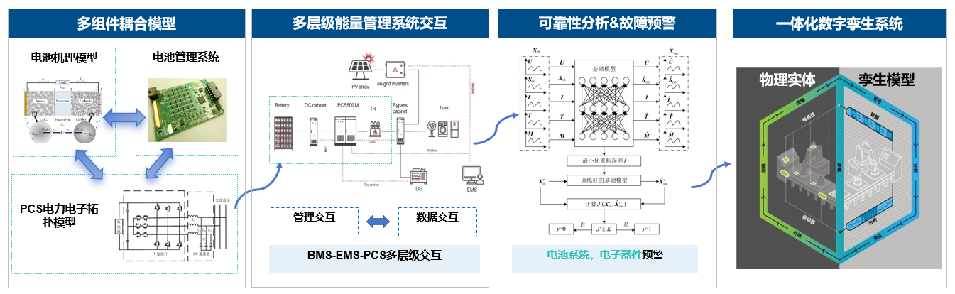 本项目面向电化学储能系统全生命周期运行需求,构建基于数字孪生的多层级故障诊断与可靠性评估体系,研发涵盖故障建模、状态监测、可靠性分析、系统集成与应用验证的关键技术。