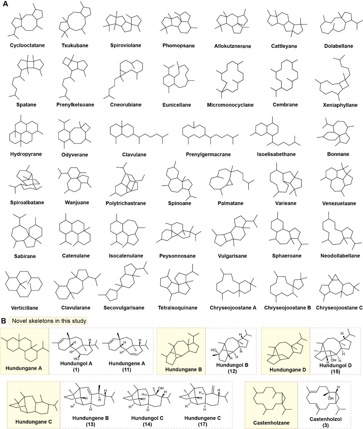 图1. 细菌中形成的二萜骨架的多样性