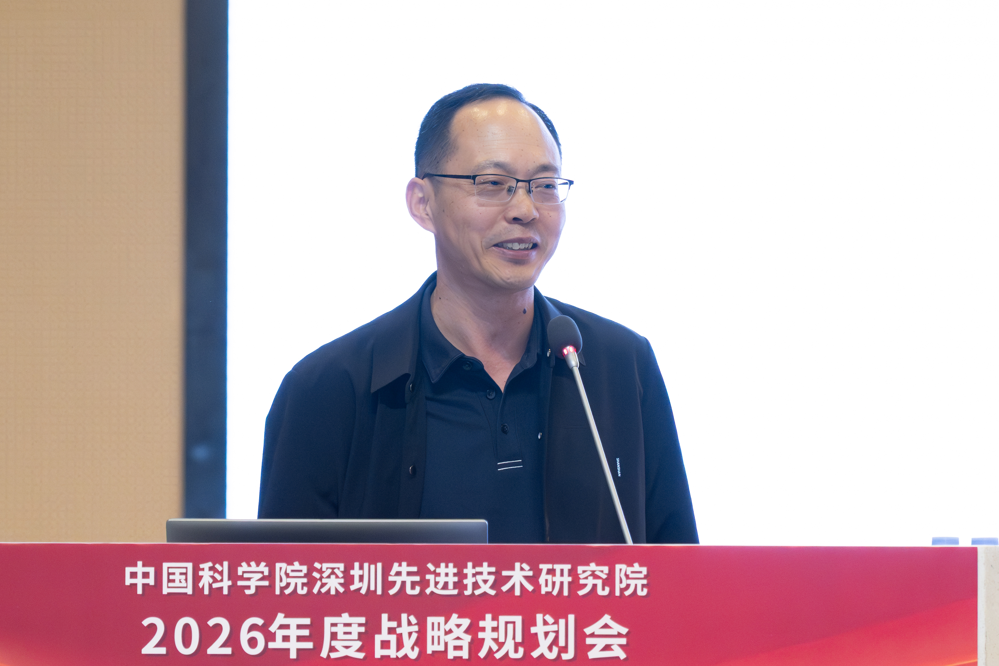 深圳先进院院长刘陈立作题为《勇立潮头,率先建成世界一流科研机构》的大会报告。报告回顾了深圳先进院二十年砥砺奋进的发展历程与突出成绩,分析了当前面临的新形势、新机遇与新挑战,阐述了深圳先进院“十五五”发展规划的总体思路、战略目标与核心任务,部署了2026年度全院重点工作。刘陈立强调,全院要坚持“做国家最需要的科研、创世界未见过的技术”为指导思想,以建成需求导向的、综合交叉类的世界一流科研机构为目标,围绕国家需求、科技前沿与产业发展的“三圈交集”,打通“科技制高点”与“产业融合点”,强化有组织科研,确保“三项清单”(重大成果、重大项目、重要人才)任务落地见效,实现从“做大”到“做强”“做精”的转变。